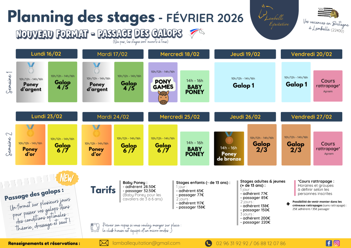 Pendant les vacances scolaires, le centre équestre Lamballe Equitation propose des stages.